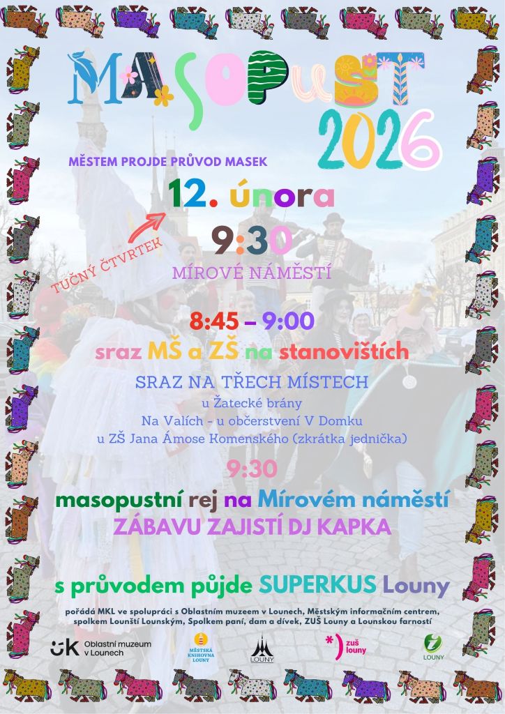 MKL ve spolupráci s Oblastním muzeem v Lounech, ZUŠ Louny, Městským informačním centrem a Městem Louny pořádá masopustní průvod v maskách pro žáky MŠ, ZŠ a širokou veřejnost: