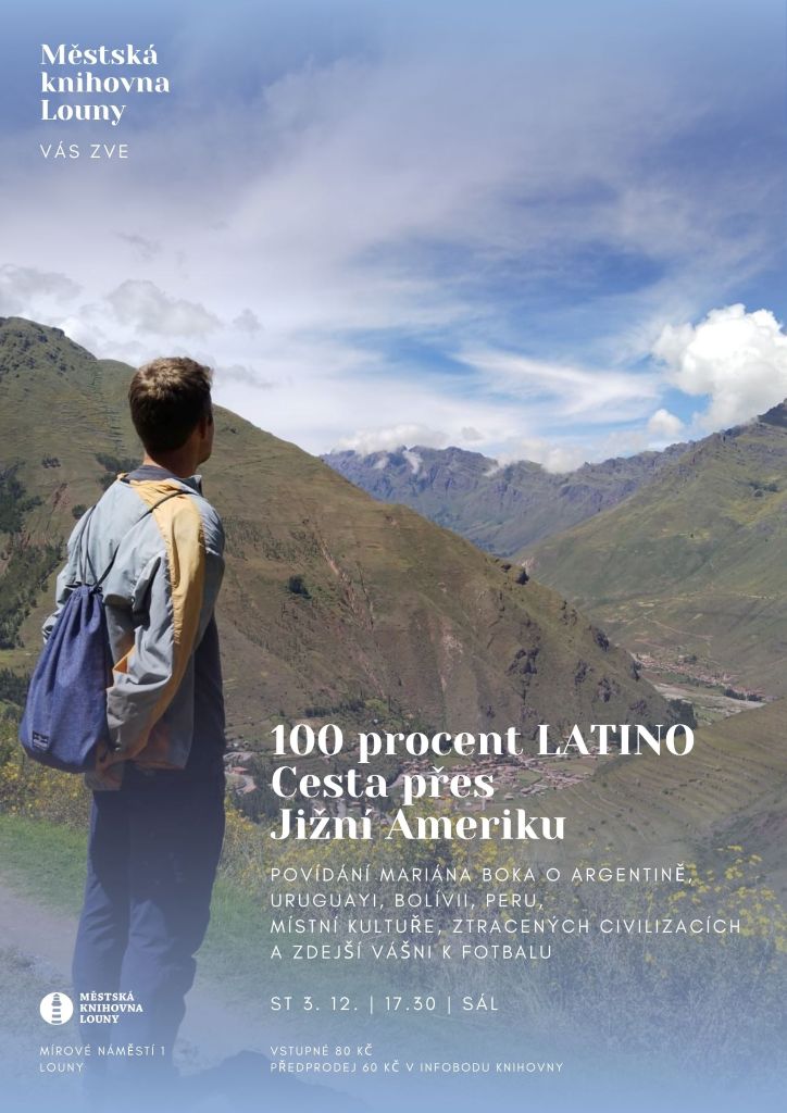 Dobrodružná cesta přes Jižní Ameriku! Podíváme se do tropických oblastí, do vysokých And i na pobřeží oceánů. Prozkoumáme místní kultury, ztracené civilizace a zdejší vášeň k fotbalu. Navštívíme Argentinu, Uruguay, Bolívii, Peru a na závěr zapomenutý španělský region Extramaduru. Jaké to je cestovat čtyři měsíce na vlastní pěst po latino světě? Přijďte si poslechnout povídání MARIÁN BOKA, plné zajímavých zážitků.