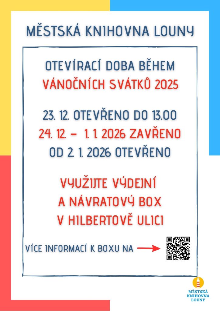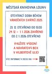 Vážení návštěvníci, Městská knihovna Louny bude během vánočních svátků otevřena následovně: