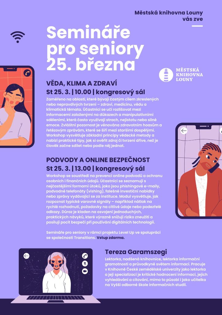 Semináře pro seniory v rámci projektu Level Up ve spolupráci se společností Transitions. Vstup zdarma.
