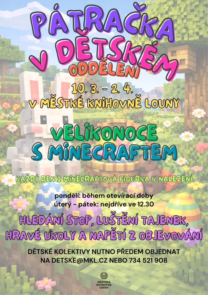 Minecraftový svět a velikonoční atmosféra. Pátrací hra, hledání stop, luštění tajenek, hravé úkoly a napětí z objevování.